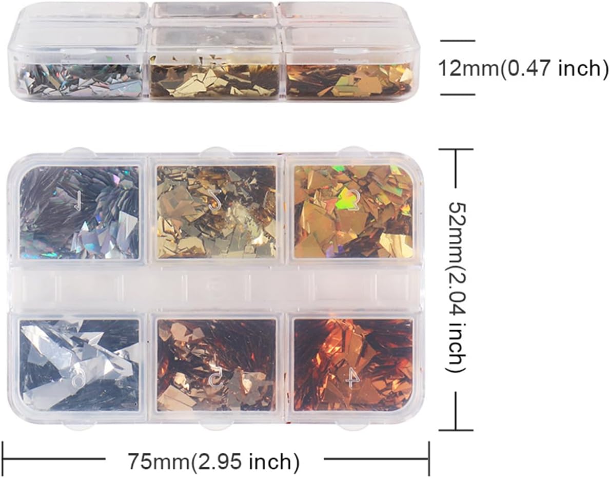 - Colorful Sequins: 6 Grids of 3D fall nail glitter sequins autumn nail decals in gold, silver, etc. Each color comes with a small plastic box protecting it from spilling out, easy for your fall nail art design