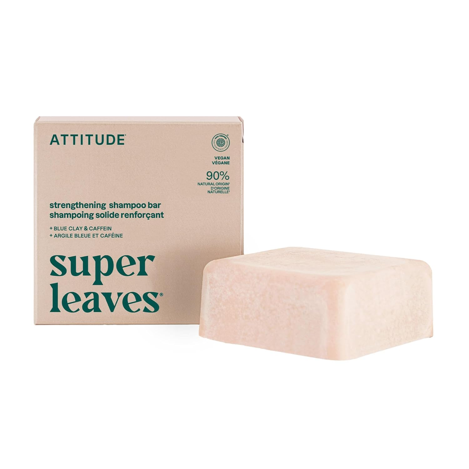 ATTITUDE Strengthening Shampoo Bar, Natural Origin, for Hair Repair & Breakage, Blue Clay & Caffeine, EWG Verified & Clean Ingredients, Vegan, Sandalwood & Cedar Scent, 4 Oz