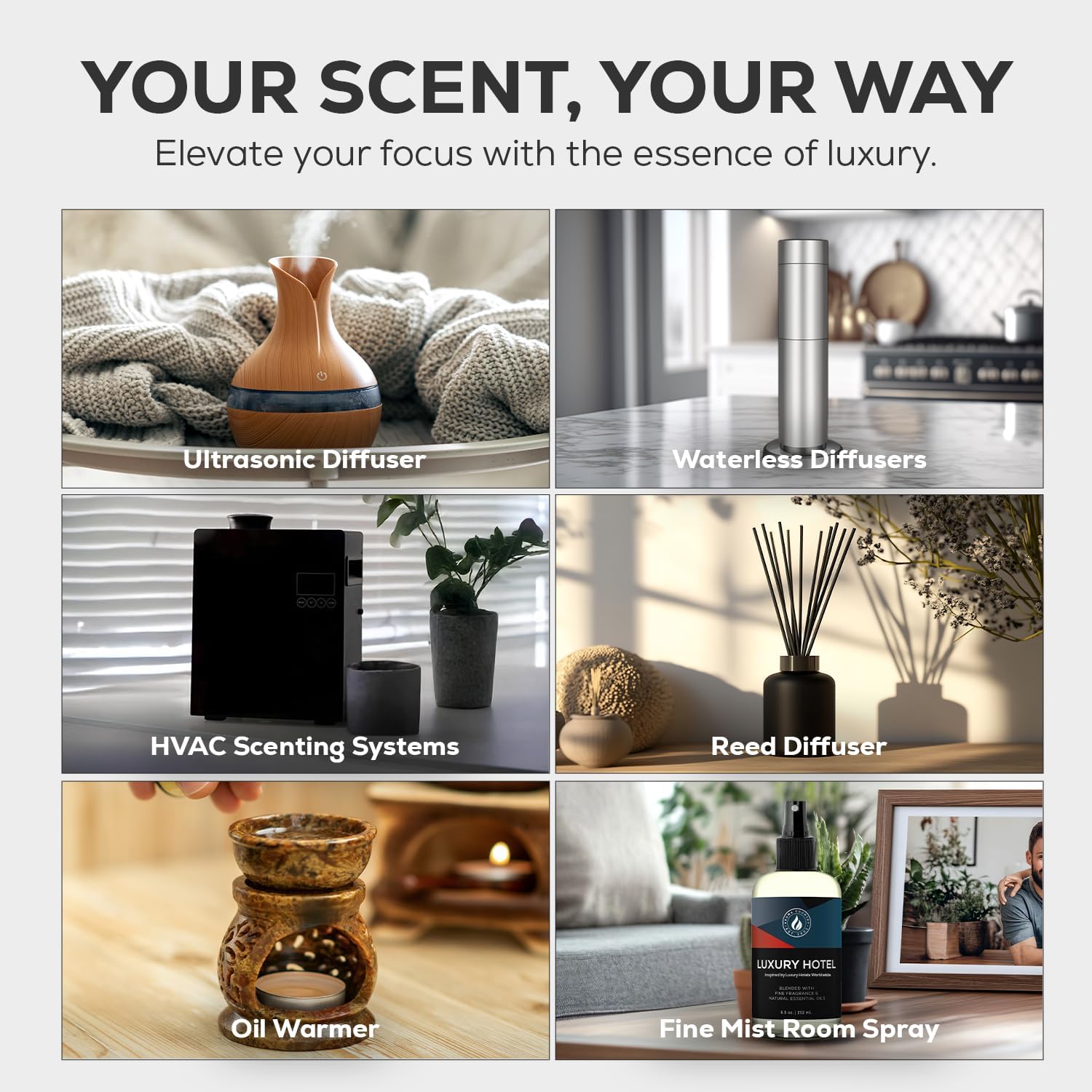 - Luxury Hotel Essential Oil for Aromatherapy – Designed to elevate your mood and reduce stress, this hotel scent diffuser oil brings calm and comfort to your space. A relaxing and refined addition to your aromatherapy routine.